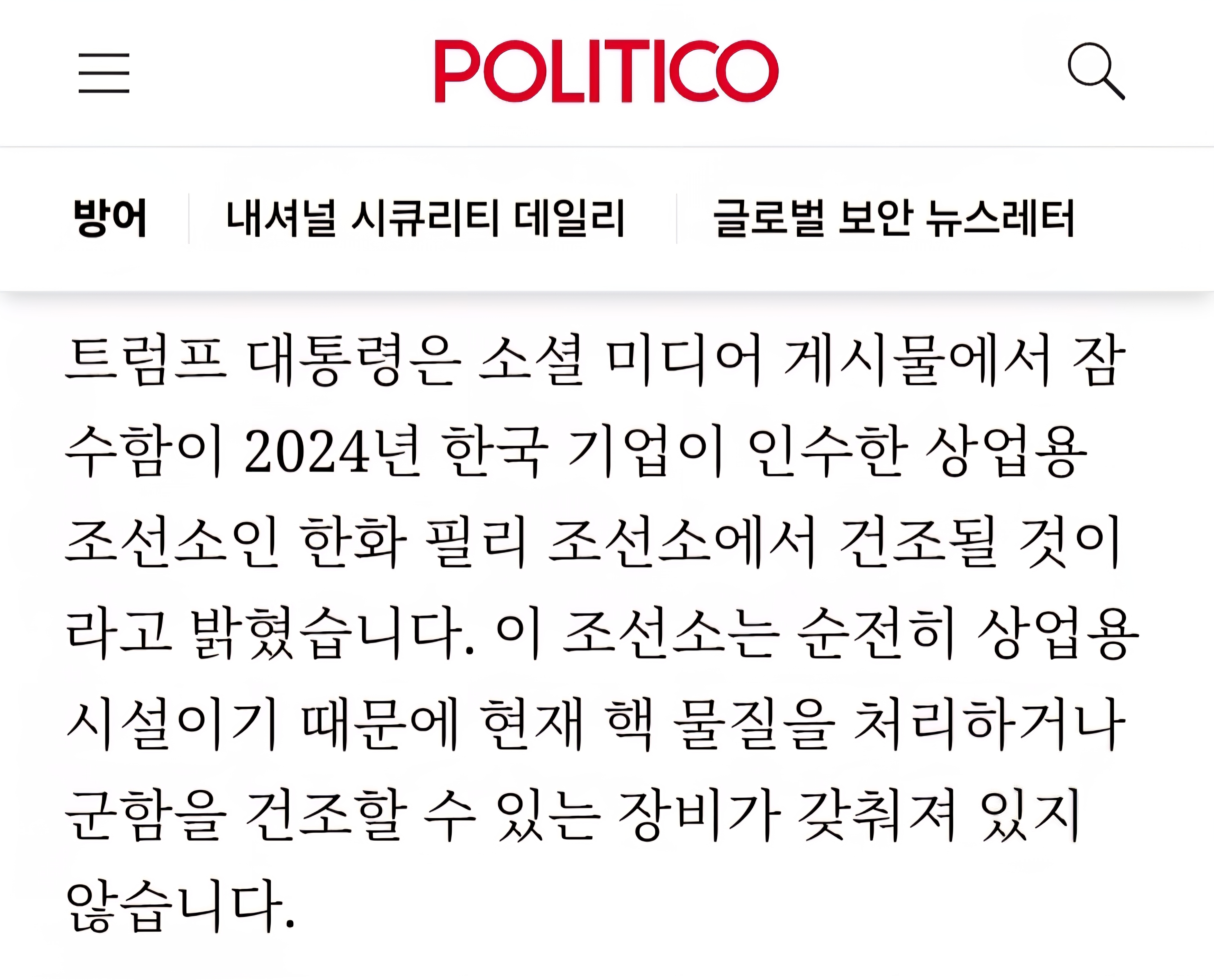 그러니 트럼프가 괜히 "필리 조선소"라는 조건을 달아 놓은게 아냐