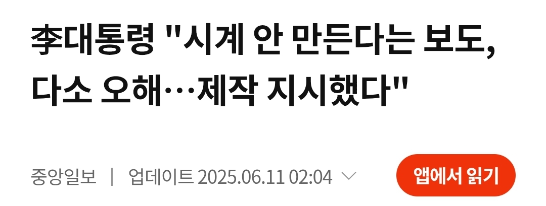 2025년 6월 9일: "시계가 꼭 필요하냐?" 바로 다음날: "시계 만들라고 지시했다" 늘 어제명에게 쳐맞는 ㅋㅋㅋ