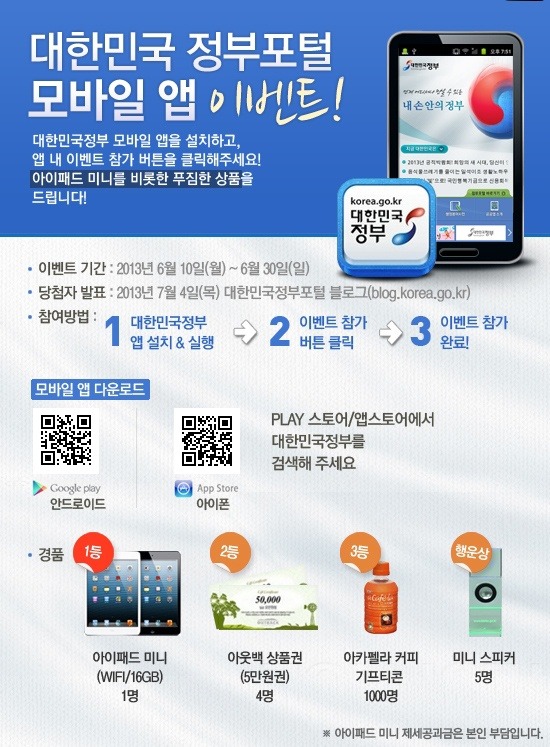 대한민국정부포털 개편 기념 이벤트 하는데요~