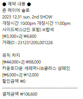 게다가 12월 31일 마지막 공연이고 뮤지션과 함께 샴페인들고 새해 카운트다운도 같이 하는 걸로요