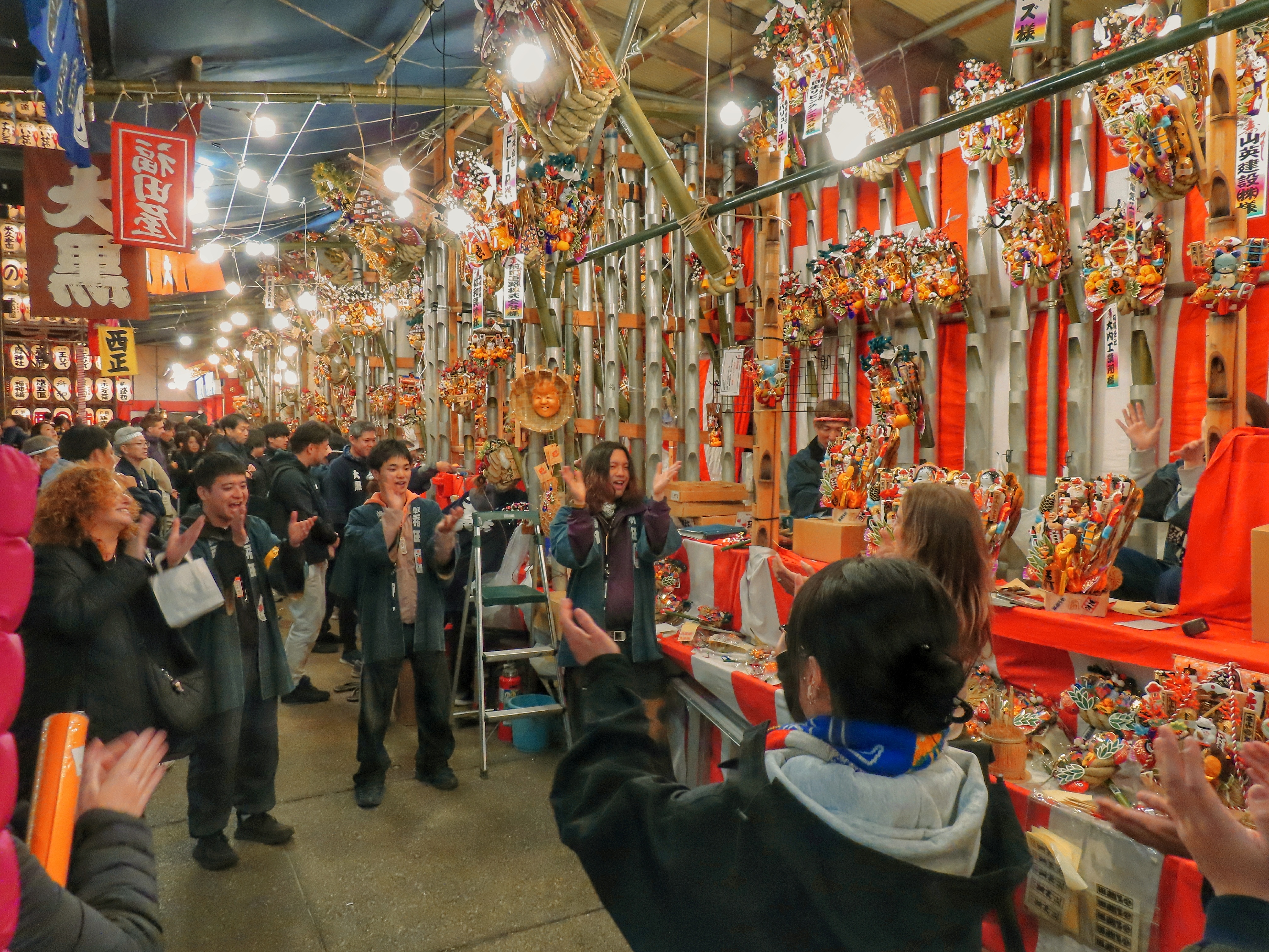 쿠마데라고 불리는 장식을 판매하는 것이 주된 목적인데, 상업 번창과 기복 신앙의 상징물입니다.
