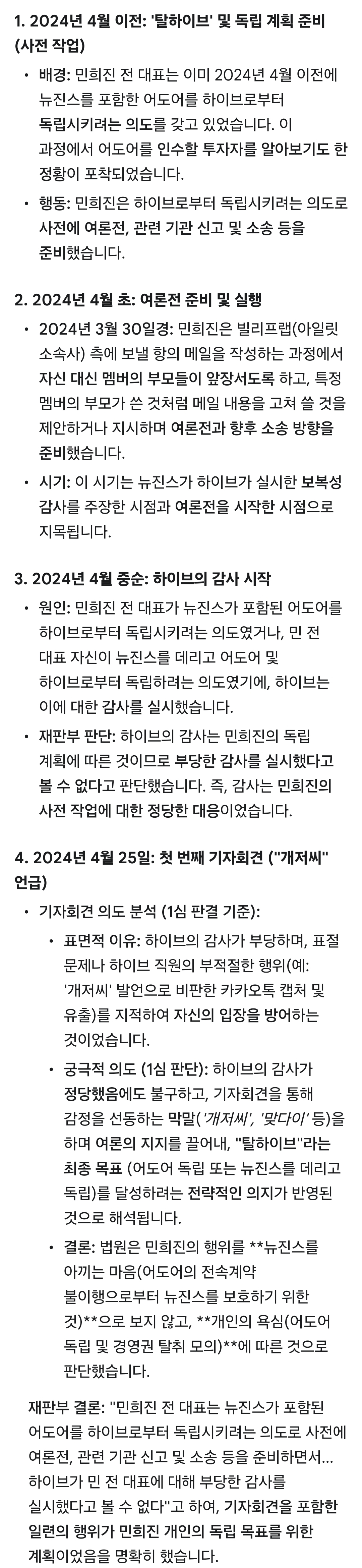 심지어 재판부가 무시해 발언은 민희진한테서 나온거라는 말까지 나옴... 굳이 이런말까진 안하는데
