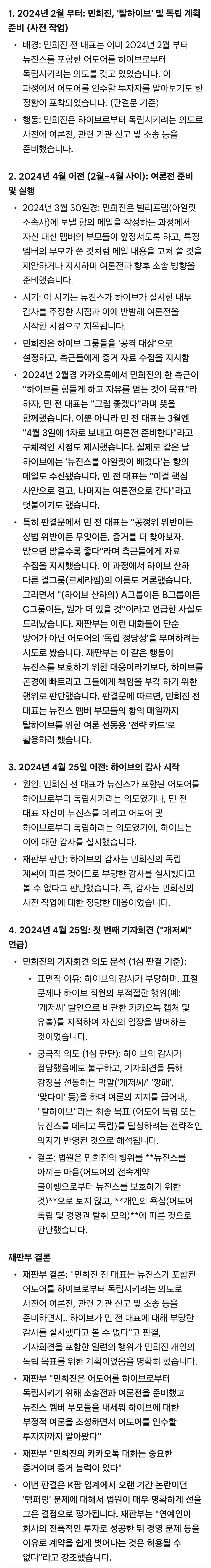 애초에 다들 알고 있었잖아 지 욕심으로 움직인거지 뉴진스 어찌되든 큰 상관 없었음