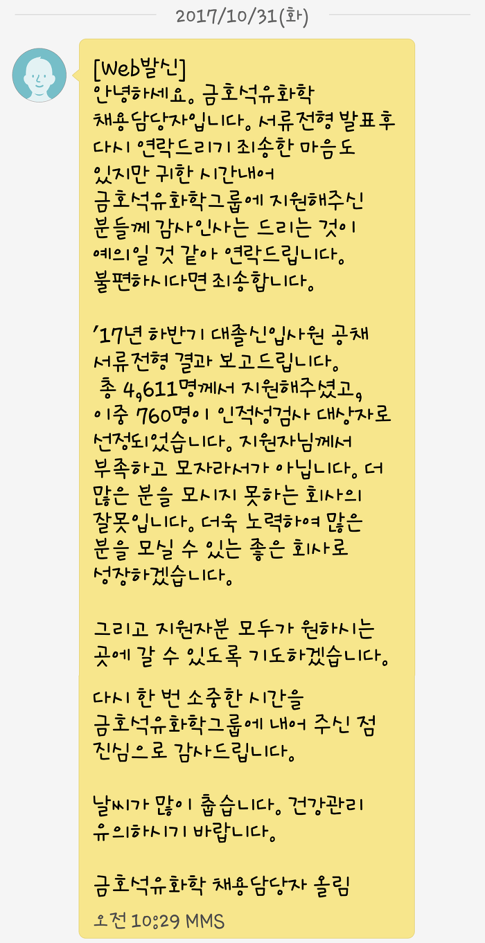 이정도면 양호 이상이야 그냥 떨어졌다는 식으로 두세줄짜리 보내고 끝내는 곳도 많음