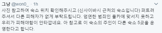 지 손가락으로 숙소 위치 특정 가능하게 위치랑 사진 다 트윗에 올려놓고는 웬 피해자 코스프레;;;;
