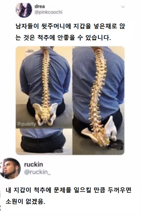 내가 고3때 겉멋 들어서 뒷주머니에 넣고 다녔는데 지갑이 얇아도 나중가면 아프고 그러더라 | 18.11.22 11:14 | | |