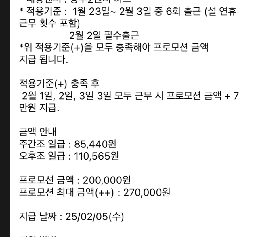 일급 더 안주네? 설날 끼면 일급 더 높을텐데 | 25.01.29 01:23 | | |