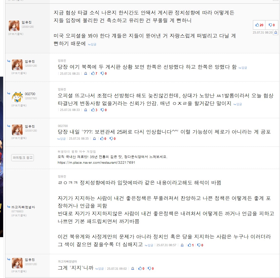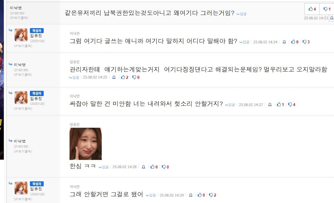 뭐 둘다 까는 것도 불만임? | 25.08.02 14:16 | | |