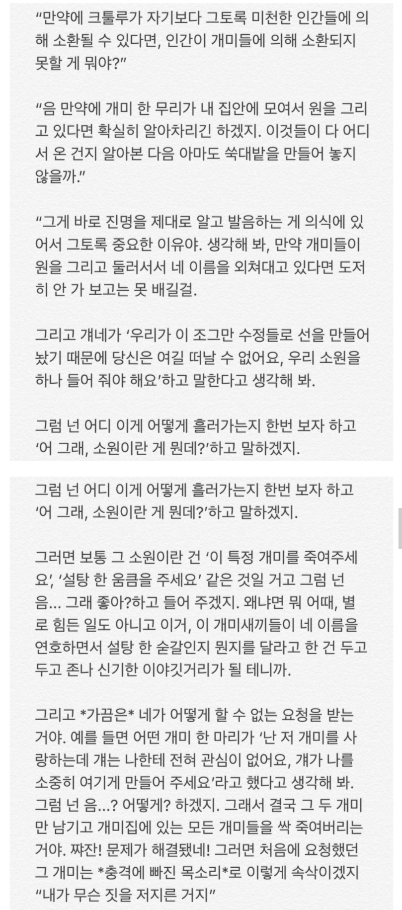 개미 : 여왕님! 여왕님 말씀이 옳았어요!! 그들은 너무나 거대하고..... 우릴... 우릴... 으, 으아아ㅏ하ㅈ시리니나지디치