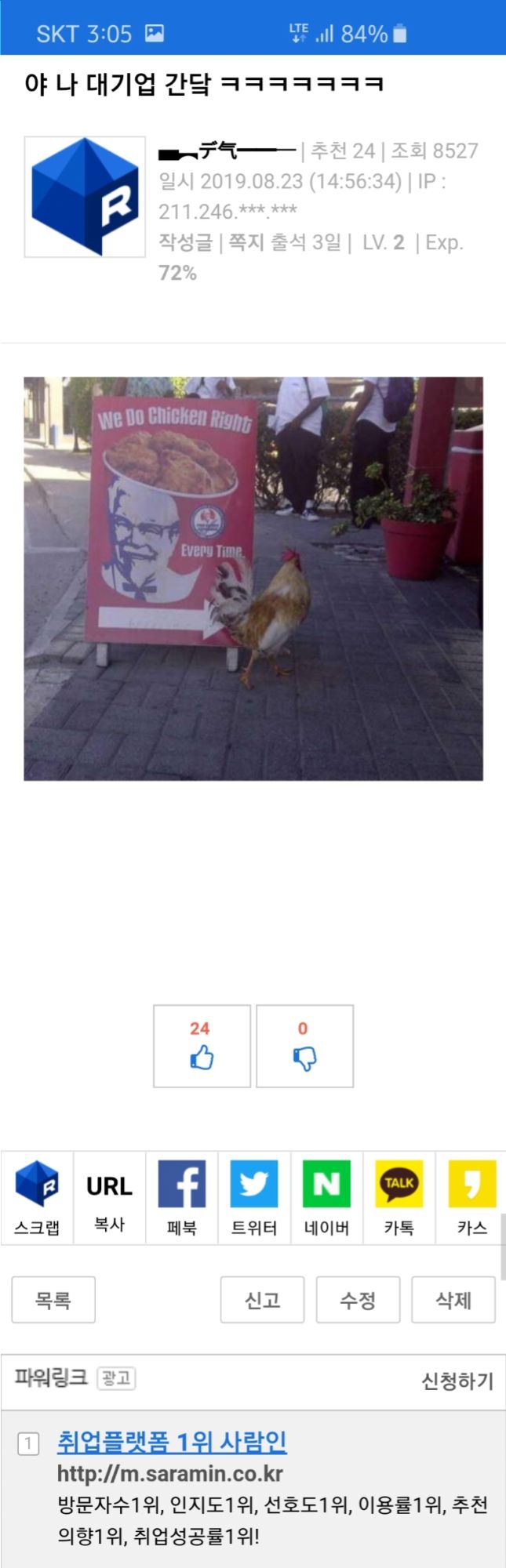 가미카제라고 드립치고 싶었으나 닭은 유용한 양식이라도 되주니 그만둠 | 19.08.23 15:48 | | |