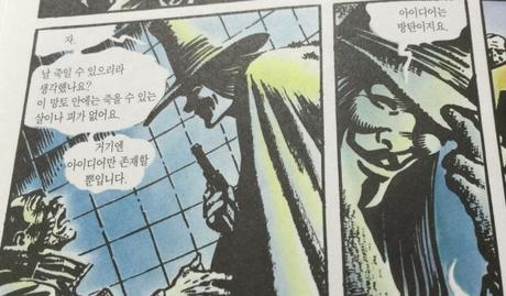 영화 보고 팬돼서 영화 몇번이나 더 본 뒤에 본역본 샀다가 하늘 무너지는 느낌 남 ㅋㅋㅋㅋㅋㅋㅋ "이 가면 뒤에는 한 남자의 신념이 담겨있지. 그리고 신념은 총알로는 죽일 수 없는 것이라네." 이 대사를 "아이디어는 방탄이지요"??? 이 개ㅆㅂ넘들이 왜 아이디어 아 ㅆㅂ 진짜 또 혈압오르네