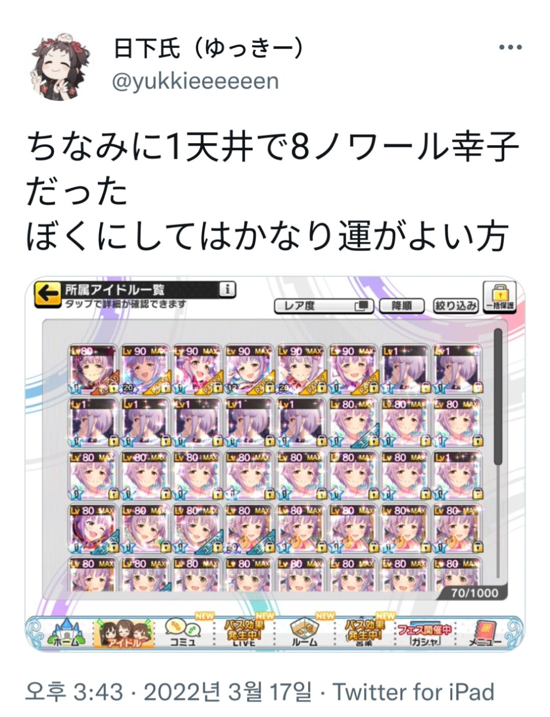 뭔... 나도 사치코 카드는 올콜랙이긴 한데 이건... | 22.06.17 11:31 | | |