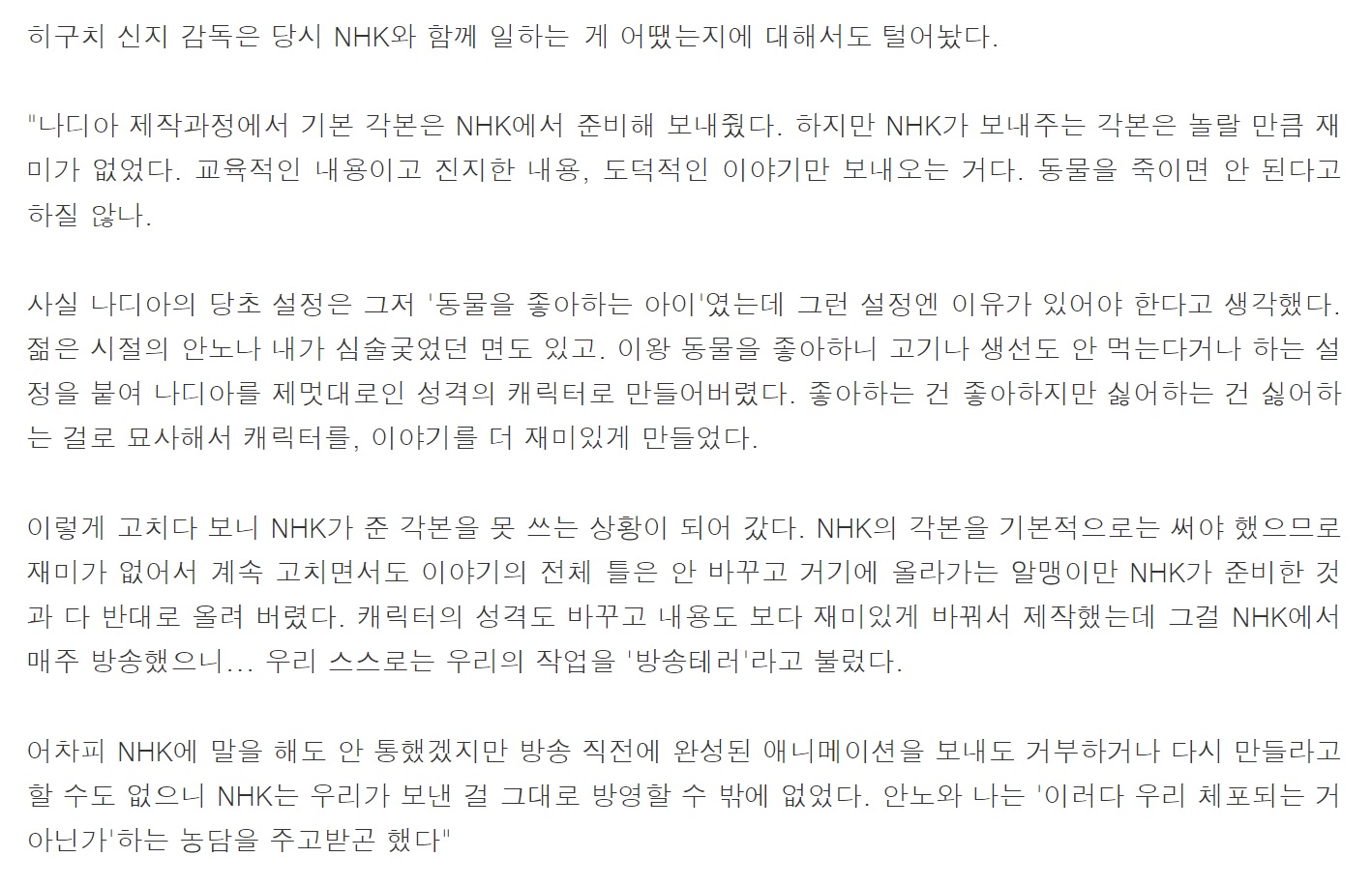 2013년, 일본침몰 영화 관련으로 내한한 히구치 신지 감독 인터뷰 중 내용.