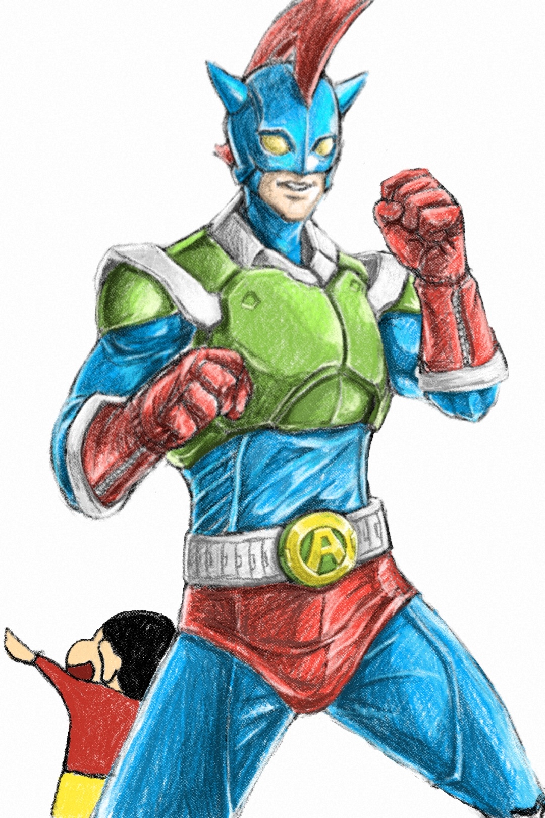 야마다 존이라는 아이가 머리위에 탑승하여 명령을 내리며 비밀결사 미드나이트랑 싸운다는 내용인데.....