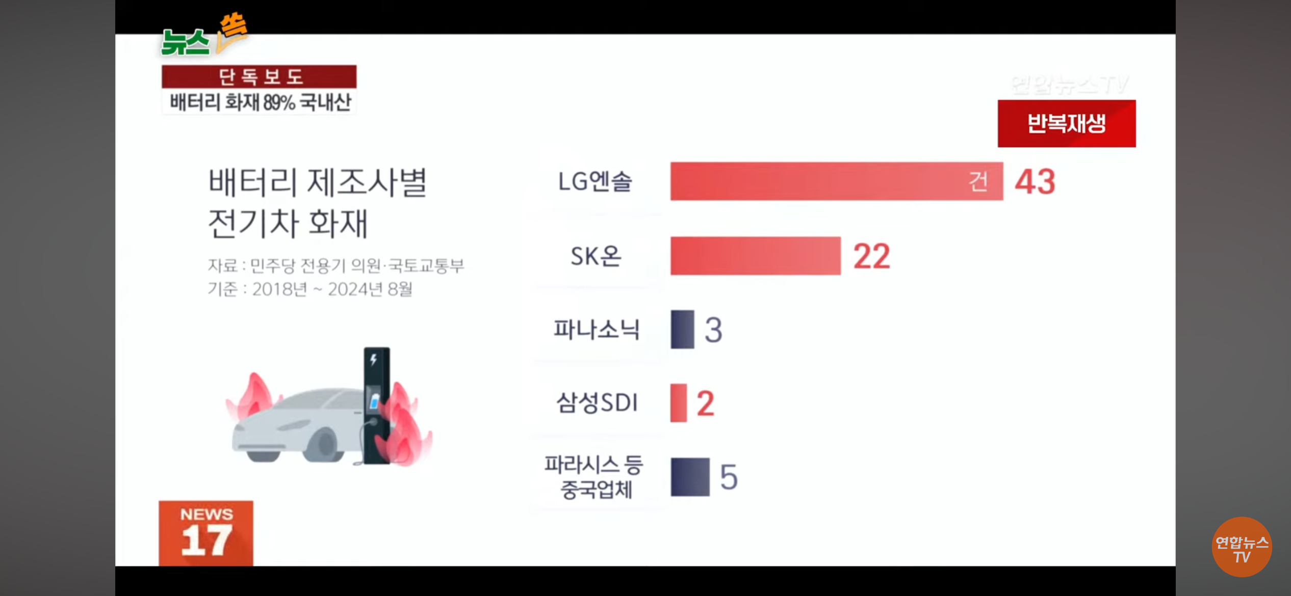 LG 엔솔이 높은 건 코나 EV의 지분이 커서인가 근데 저거 배터리 발화로 인한 화재인지, 아니면 배터리는 문제 없었는데 다른 원인으로 인해 냉각수나 기타 부품에서 발생한 화재인지 구분이 되어있는건지 궁금하네요. 다른 부품에서 화재가 발생한거고 배터리는 멀쩡한데 저 통계에 들어간거면 저 통계의 신뢰도가 사라지는거니... | 24.08.19 20:37 | | |