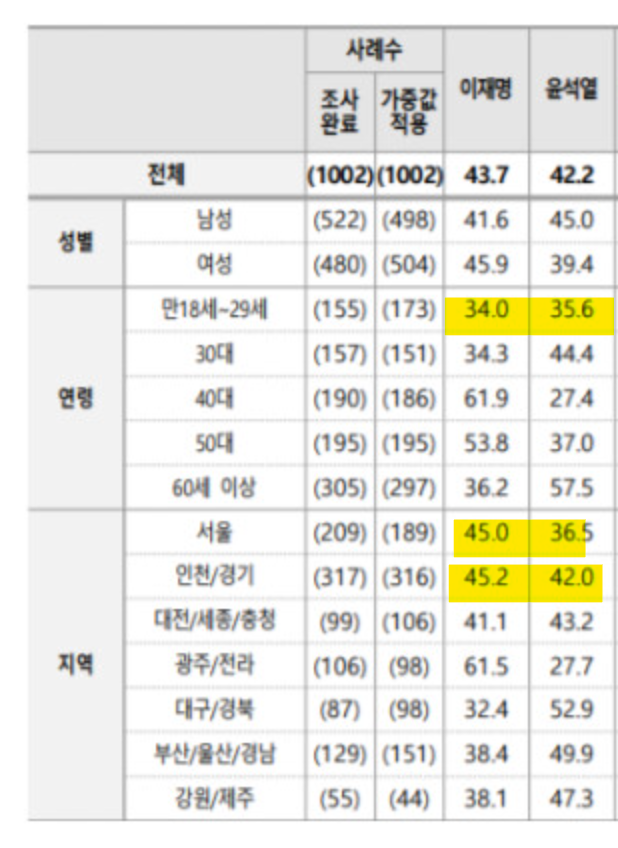 다른 조사랑 다르게 20대에서 호각에 수도권 아주 크~~~~~게 재역전하셨네요. 역시 이재명! 이재명은 합니다. ㅋㅋㅋㅋㅋㅋㅋㅋㅋㅋㅋ | 22.02.21 12:13 | | |