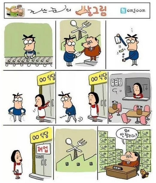 사장이란 사람들, 문재인 정부의 52시간, 최저임금 때문에 자영업자 죽어나간다고 징징거렸는 데 정작 굥 때문에 죽어나네요 이게 다 지들 업보죠 누구 말대로 다 좋은 경험이다 생각해야 할 겁니다
