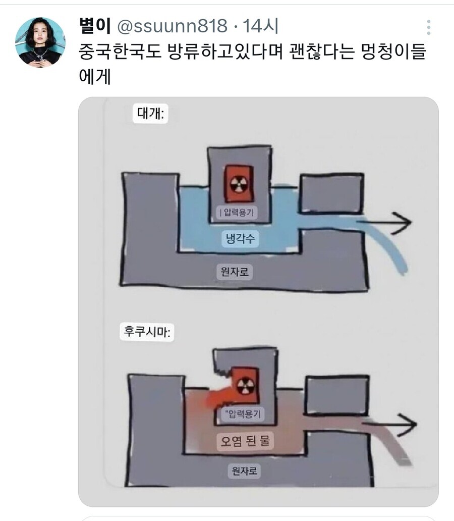 1. ‘처리수’니까 문제없다 2. 이미 북한, 중국은 몰래버린다. 문제없다 이미 이 두가지를 가지고 무지성으로 가고 있습니다 | 23.08.24 09:38 | | |