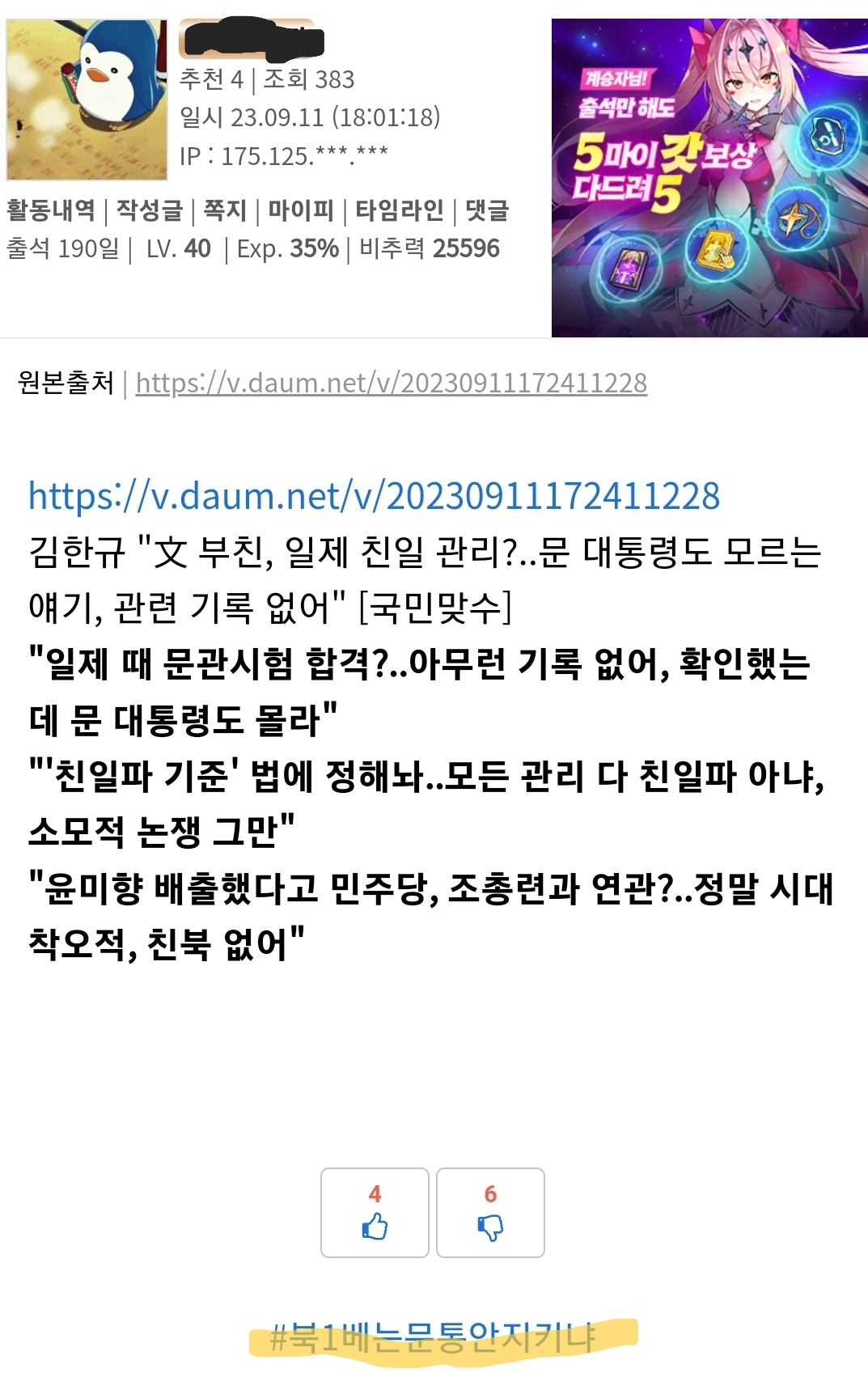 입벌구 이재명 말이 진리야? 정신나간 윈터러리야 코인으로 날린 돈은 얼마니? | 23.09.12 16:07 | | |
