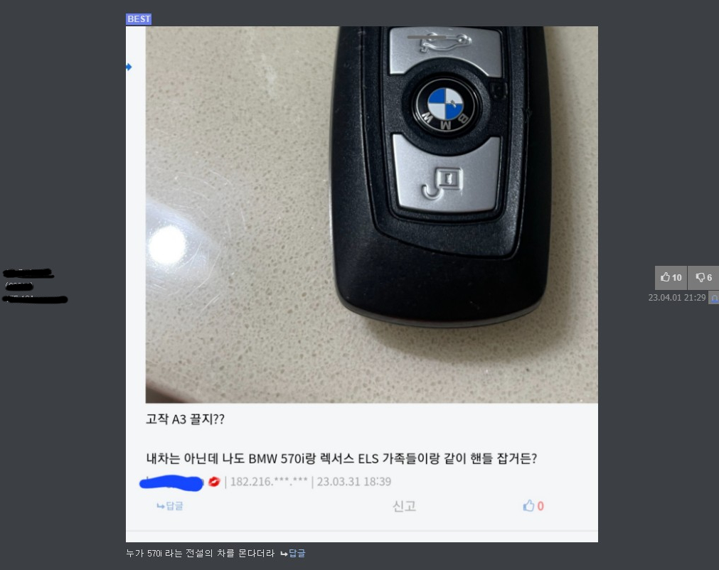 무슨반박??? 본인이 570i랑 els탄다고 구라친거 반박 가능? A3욕하면서 ㅋㅋ 570i있으면 인증좀 해봐 ㅋㅋㅋ 귀여운 일베야