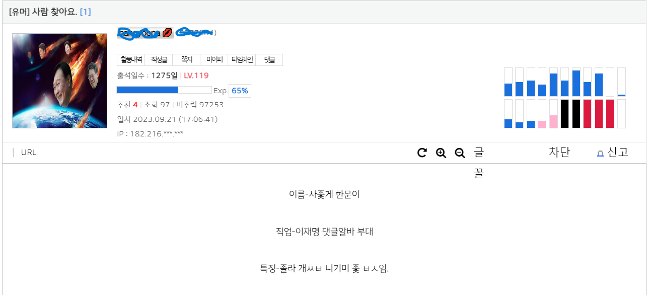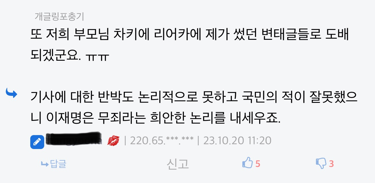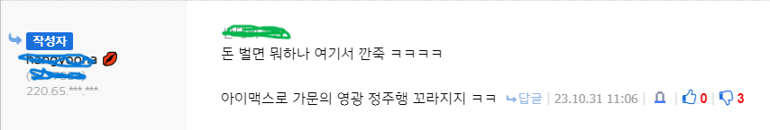 내가 약올린게 얼마나 개야마 돌면 이리 발악일까? ^^ | 23.11.02 21:21 | | |