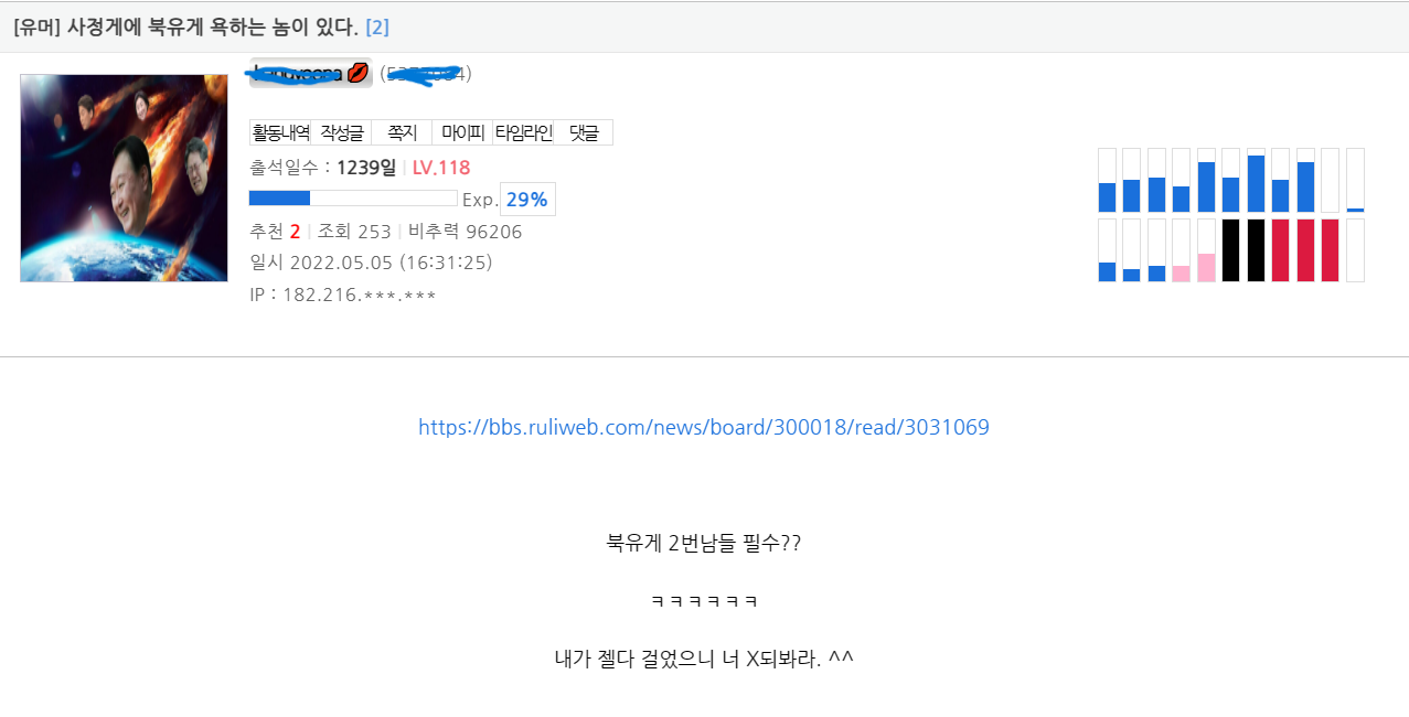 북유게 염탐 하면서 윤석열 씹히는건 모른척 ㅋㅋㅌㅌ | 23.11.02 21:07 | | |