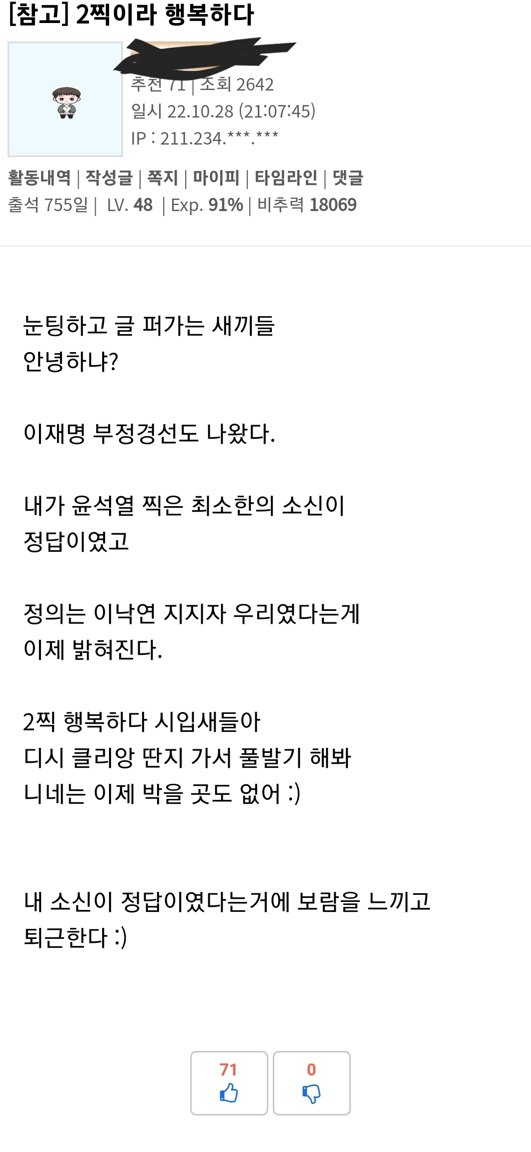 ㅋㅋㅋㅋㅋㅋㅋㅋㅋㅋㅋ 개버러지 2찍이들 ㅋㅋㅋㅋ | 23.12.05 16:30 | | |