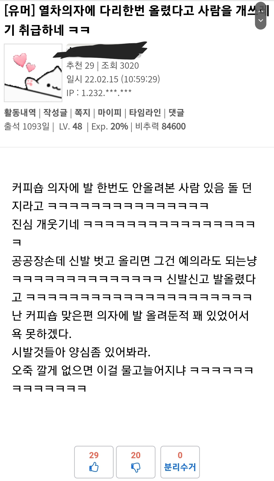 이 글 쓴 새끼는 가정교육이나 학교도 못 다닌듯 부모없나? | 23.12.05 16:41 | | |