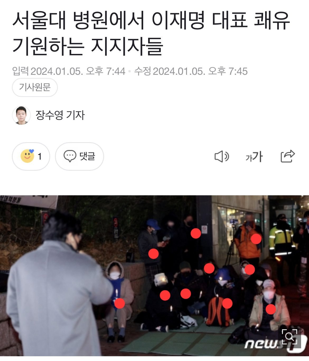망치로 대가리 깨져도 다음날 퇴원한 송영길. 1센치 아야 일반병실 순조롭게 회복중인 사경 이재명. | 24.01.06 11:41 | | |