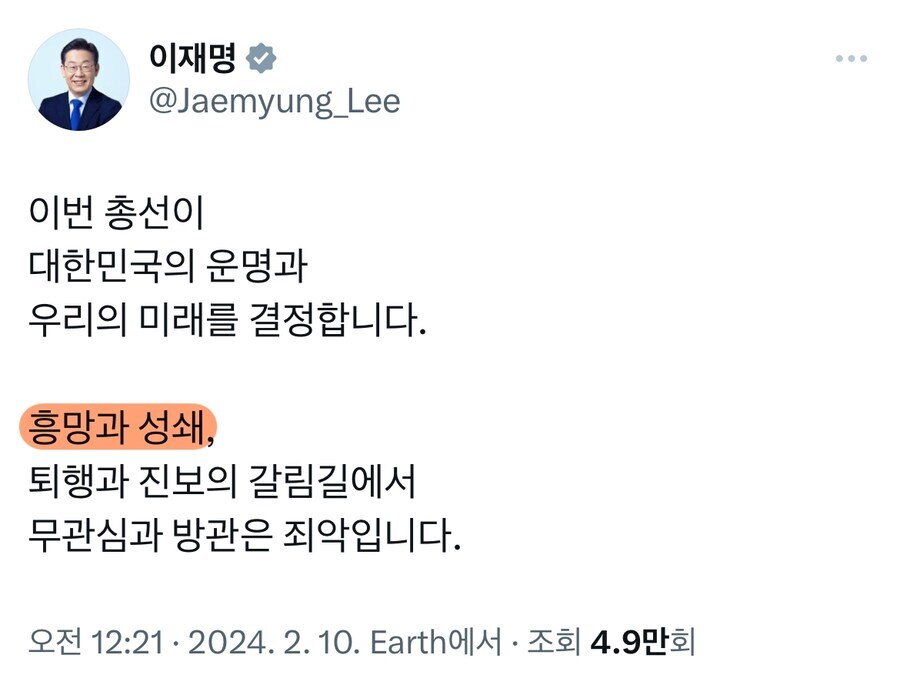 어떤 이재명 신도는 남의 당에 신경쓰고 관련 게시글에 댓글 다는 건 예의에 어긋난다고 하던데, 넌 어떻게 생각하냐? | 24.02.11 09:52 | | |