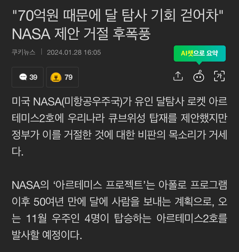 70억도 없어서 미국이 공짜로 달탐사 위성 태워준다는 것도 못 보내놓고 뭐라구요?
