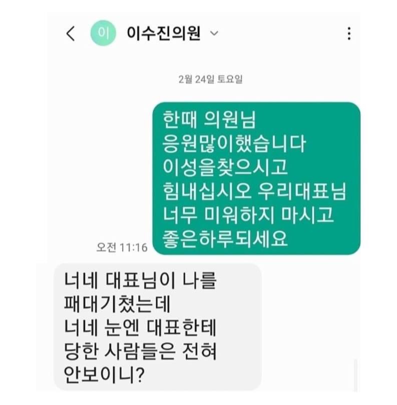이수진에게 여기서 댓글로 험한 말 하기는 쫄리는가 보구나? 남자가 그러면 되냐. 결기를 보여줘 너 하던데로. ㅋㅋㅋㅋ | 24.02.25 10:49 | | |