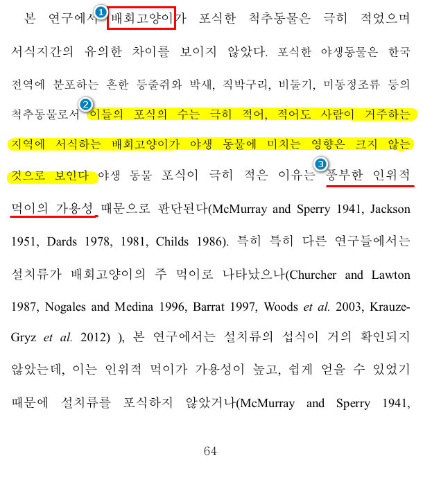 누군가 주는 먹이가 그 지역의 비영역성 소형조류의 개체수 감소에 영향을 미치는지에 대한 연구로 주제를 바꾸면 그렇지 않을걸 캣맘 하나가 먹이는 고양이는 많아봐야 스무마리 안짝일건데 고양이 스무마리가 모였다고 인근 참새가 없어진다고? 참새는 원래 환경오염에 민감하고 숲이나 산 처럼 우거진 곳을 필요로 하기 때문에 줄어들었을 가능성이 훨씬 큼 | 21.02.09 21:37 | | |