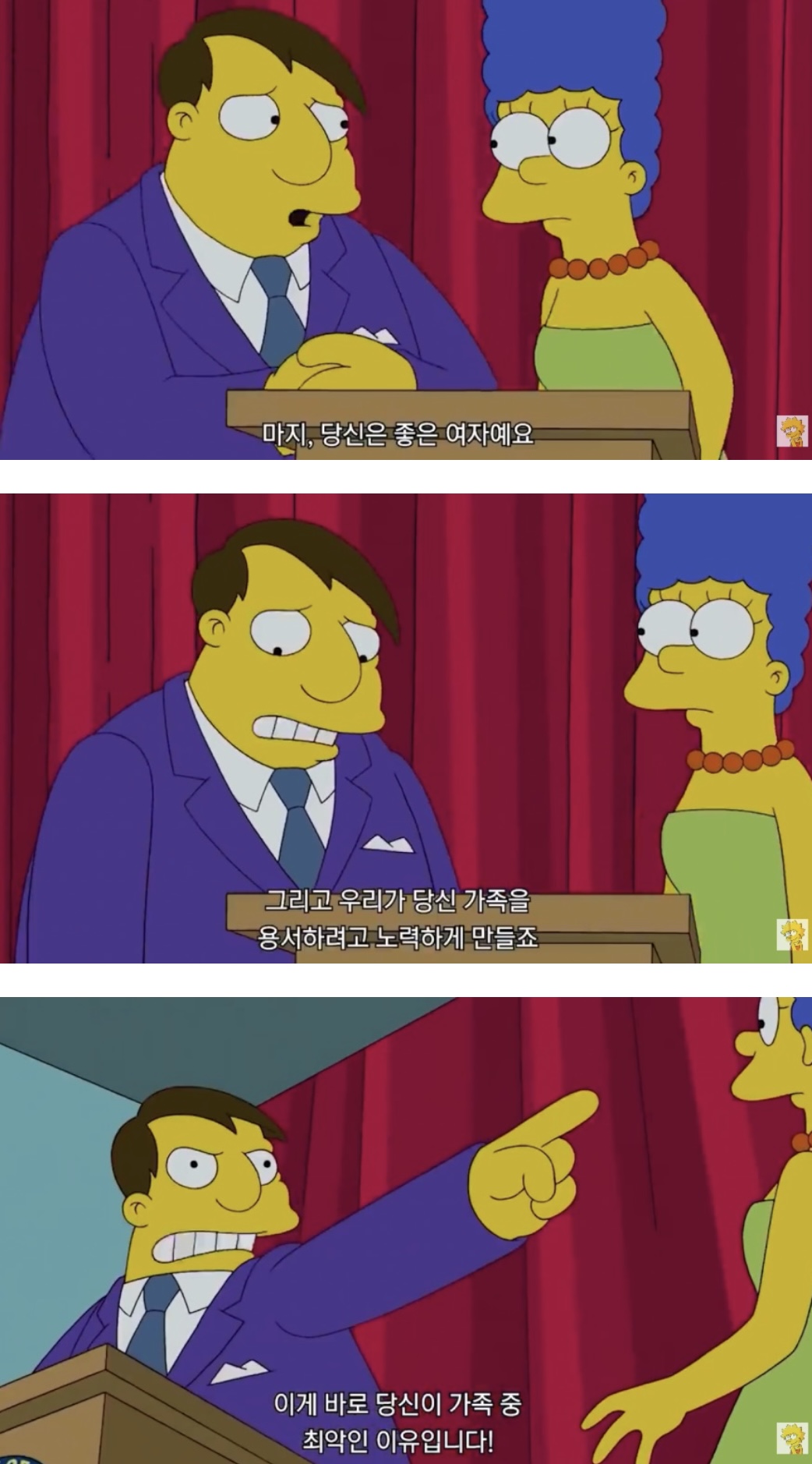 마지가 잘못했을 가능성이 높을까 호머가 잘못했을 가능성이 높을까 | 22.04.11 07:31 | | |