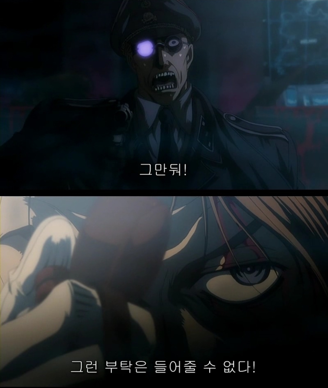 나는 이 대사가 제일 간지 났었음. 흡혈귀들이 총쏘면서 "멈춰!" 하는데 저렇게 대답해버리니까 흡혈귀들이 목숨 구걸하는 꼴이 되어버림.