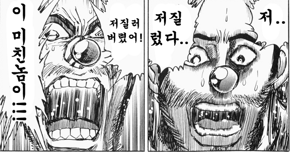 "이.. 이자식!!! 남의 가게에 낙서를 하다니!! 끌어내려 주마앗!!!" "크크큭 네놈이 먼저 시작한 일!! 크앗!!"