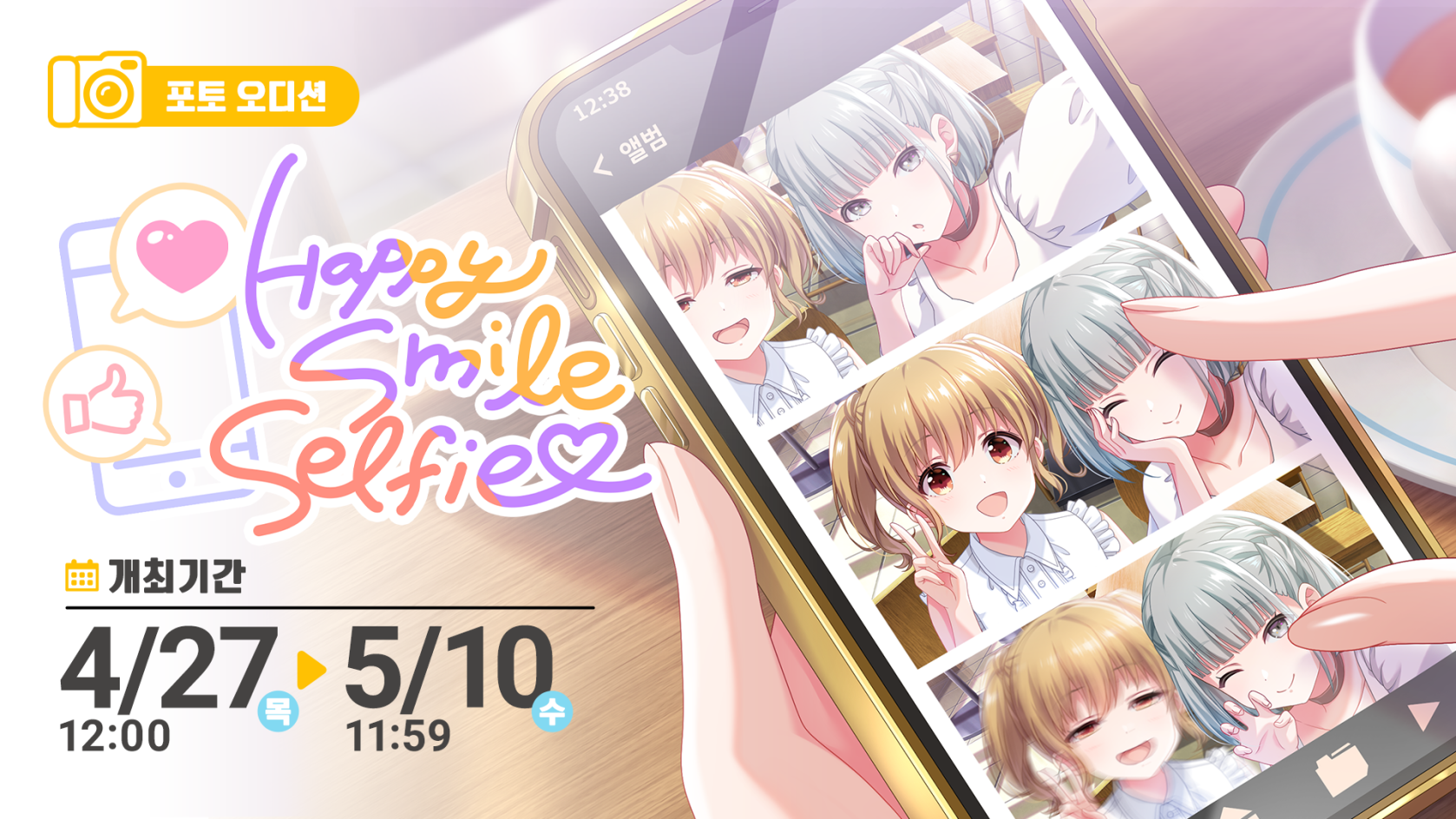 2023/4/27(목)12:00부터 개최하는 포토 오디션 'Happy Smile Selfie'에서 플레이 할 수 있습니다.