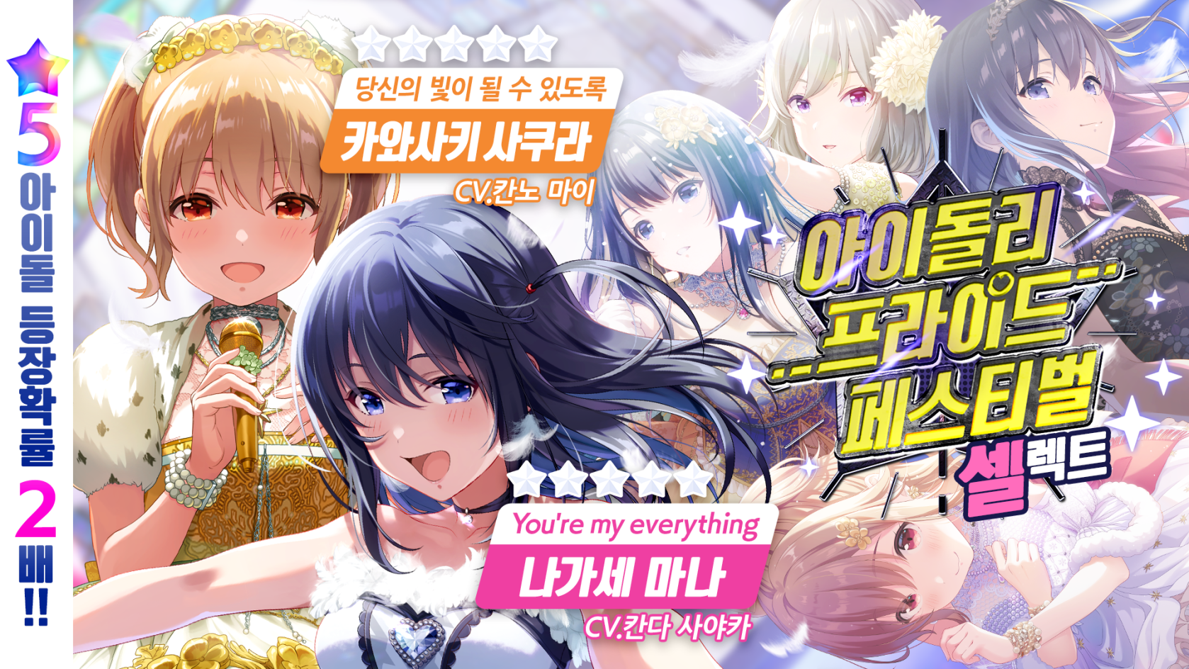 픽업으로 선택한 ★5아이돌의 획득 확률이 오르는 페스티벌 셀렉트 캐스팅 개최 !