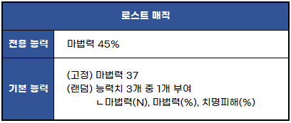※ 위 내용은 UR 등급 로스트 매직의 최초 획득 시를 기준으로 작성되었습니다.