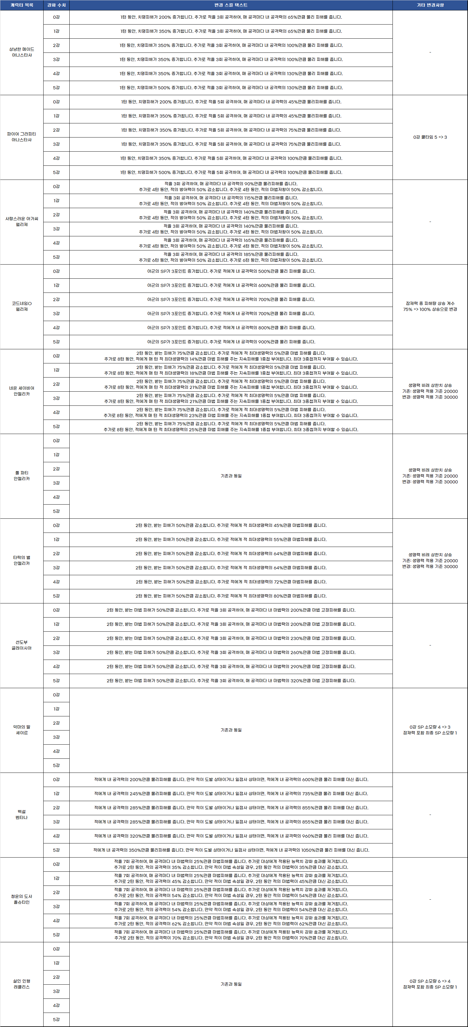 - 일부 코스튬의 밸런스가 변경됩니다. 변경된 내용은 아래와 같습니다.