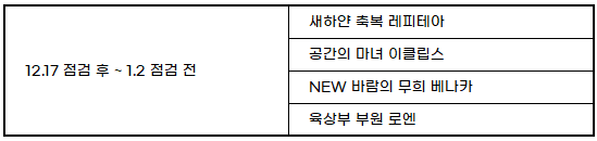 4) 해방의 서 : 2024년 12월 17일(화) 점검 후 ~ 2025년 1월 2일(목) 점검 전까지 진행됩니다.
