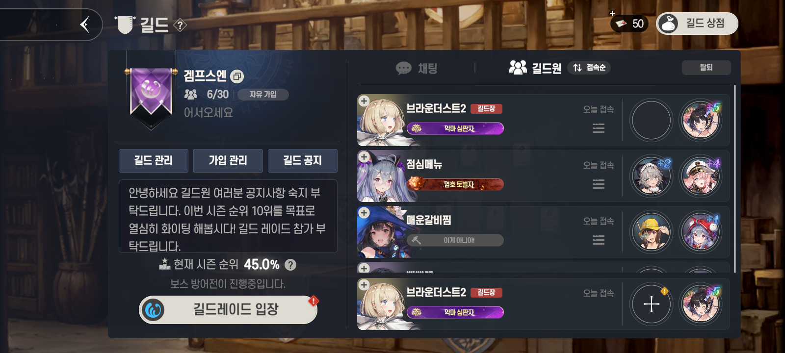 많은 길드장 여러분께서 건의해 주신 내용을 반영하여 길드 공지 기능이 추가됩니다.