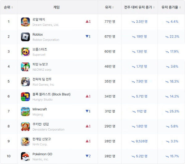 [ETC] [모바일 랭킹] 2월 1주차, '로블록스' 구글 WAU 1위 탈환