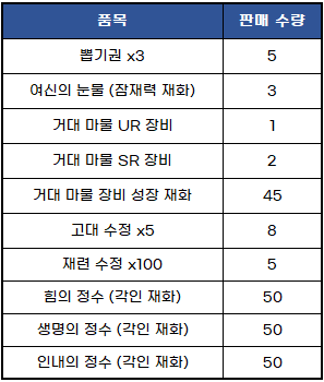 - 시즌 이벤트 상점이 갱신됩니다. 상점의 주요 판매 아이템은 아래와 같습니다.