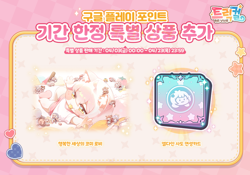 구글 플레이 포인트 부스트 이벤트를 기념해 구글 플레이 포인트로 구매 가능한 신규 패키지가 추가됩니다.