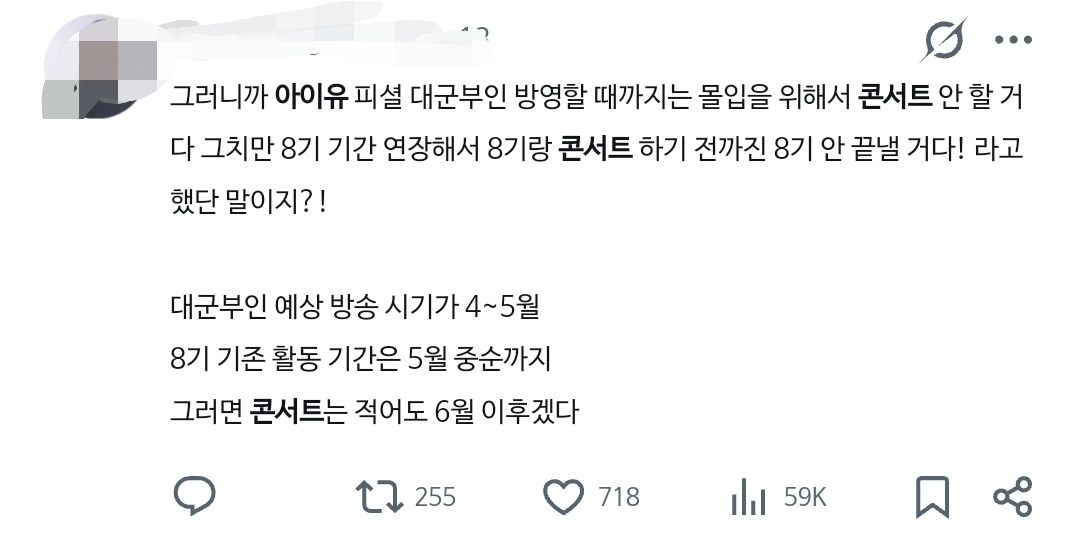 정확하진 않은데 듣기로는 내년 가을에 콘서트가 있을 수도 있다는 것 같습니다 내년에 대군부인도 방송하게 되니 더 좋아하실 일이 많을 거에요 | 25.09.16 22:52 | |