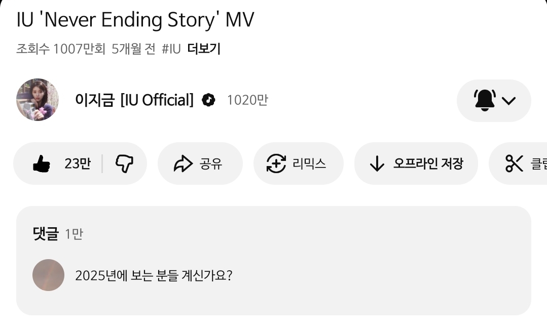최근에 유튜브 천만뷰도 달성했네요 | 25.11.12 10:10 | |