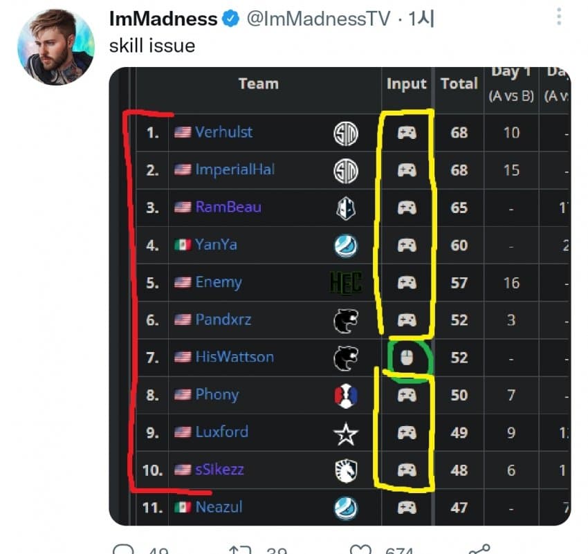 님이 패드 보정이 강한 콜옵과 에펙을 비교하면서 오버워치도 패드와 키마가 할만하다는 거잖아요? 오버워치는 패드와 컨버터 보정치가 똑같고, 맞아요. 오버워치는 보정때문에 불편한때가 많아 보정 줄여야하고요. 아무튼 같은 보정치 선상에서 누가 유리할까요? PC로 오버워치로 해보면 콘솔과 동티어에서 다른게임 입니다. 패드숙련도과 떨어지면 패드숙련도를 높이세요. 에펙 프로들도 패드로 하는데, 왜 굳이? 아님 PC로 그냥 하시면 되잖아요? | 23.01.03 23:43 | |