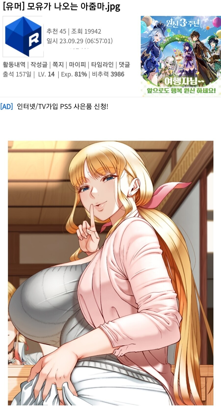 첫 유부녀라는 야애니에 나옴 | 26.03.02 18:39 | | |
