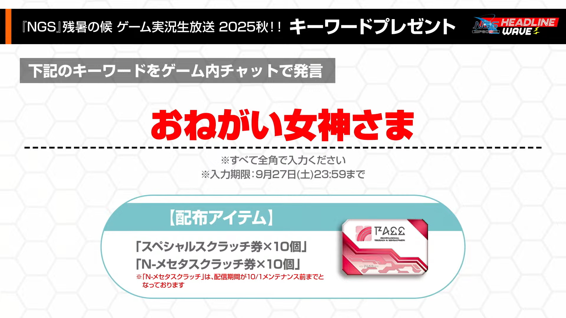 [잡담] 『NGS』残暑の候 ゲーム実況生放送 2025秋!! 키워드선물